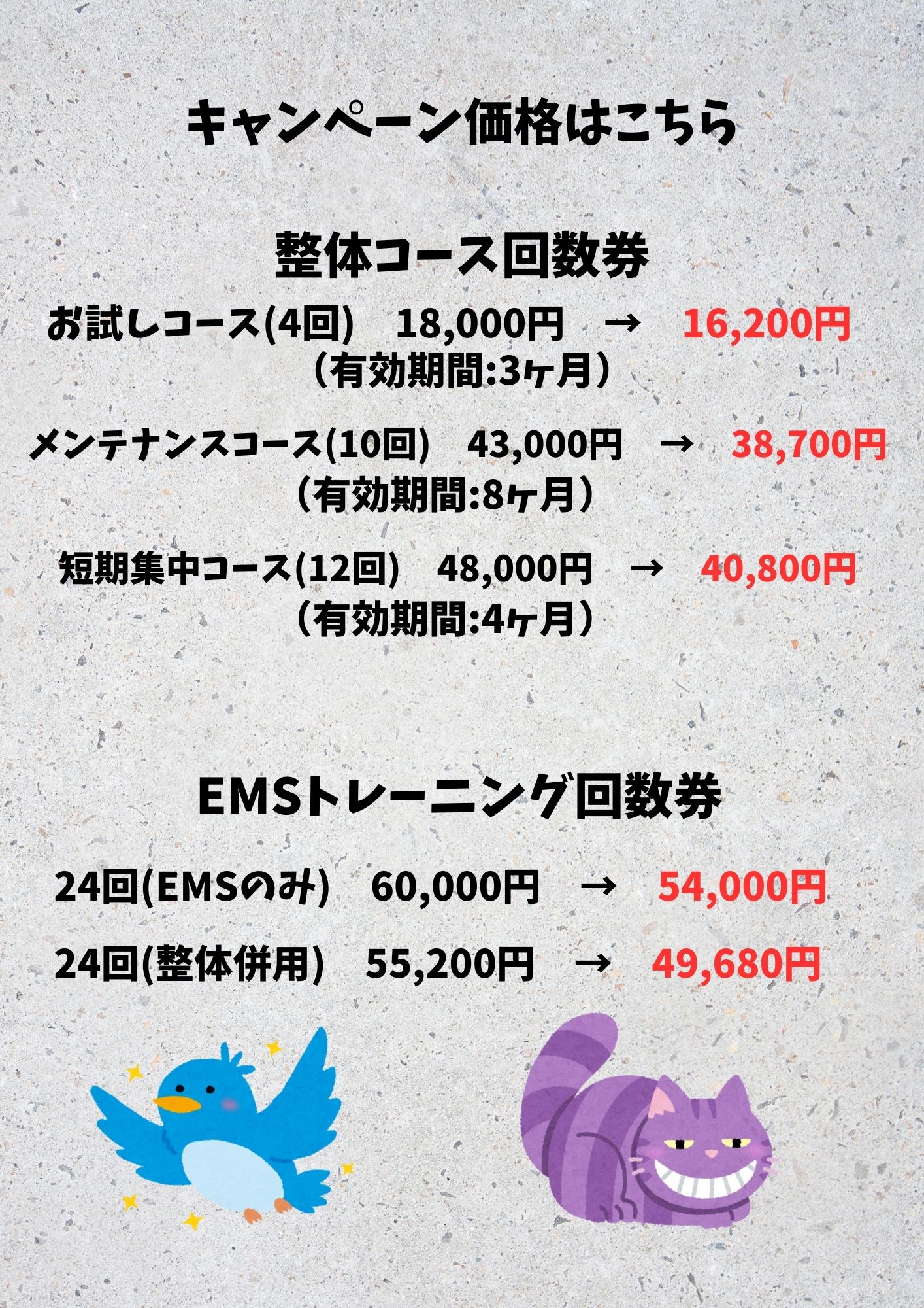 整体コース、EMSトレーニングがお得に受けられる今年最後のチャンスになりますので、腰痛や肩こりでお悩みの方はこの機会にぜひご利用ください!